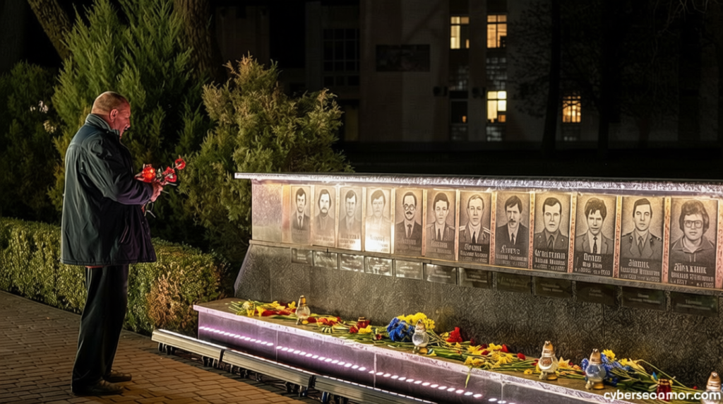 In the northern city of Slavutych, residents gathered at midnight on Saturday to commemorate the disaster, honoring the workers who undertook the cleanup and mourning the victims of the 1986 accident. Candles were lit in the shape of a prominent radiation symbol to mark the occasion. Four years after the disaster, over 600,000 individuals from the Soviet Union joined the effort, risking high radiation exposure as part of the mission.