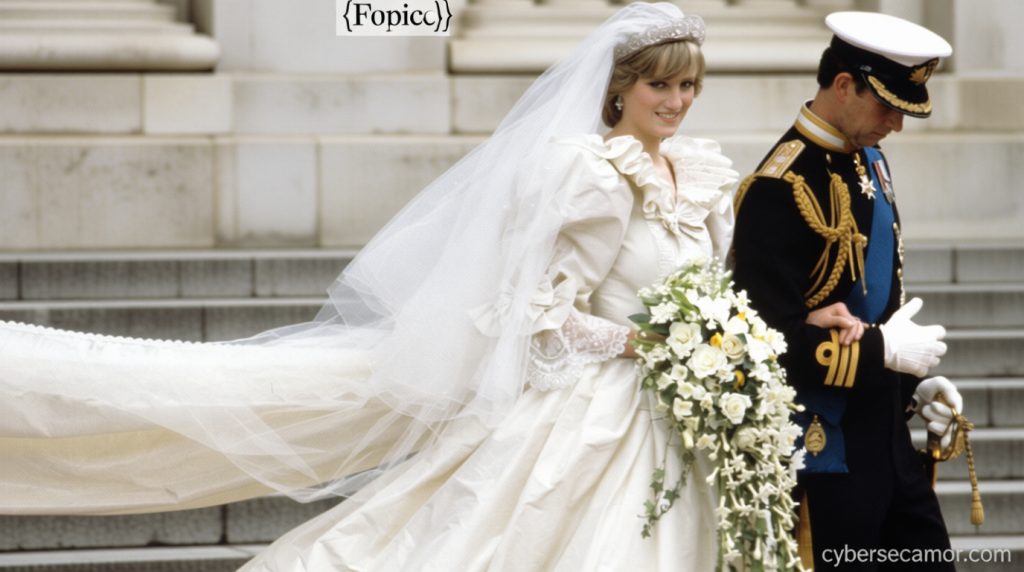 In 1981, Lady Diana Spencer’s iconic wedding at St Paul’s Cathedral captured global attention, with David Emanuel’s creation—designed in collaboration with his wife Elizabeth—adored by an estimated 750 million viewers. The ivory silk taffeta and lace ensemble, featuring a 25-foot train, remains a celebrated moment in fashion history.
